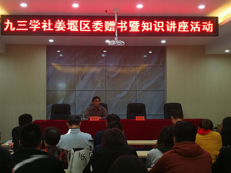 活动中,九三学社姜堰区委负责人向居民介绍了九三学社历史沿革和姜堰九三学社相关情况,向社区赠送文学书籍200余册,并邀请本地知名作家高泰东教授进行《姜堰佛教简史》专题授课。