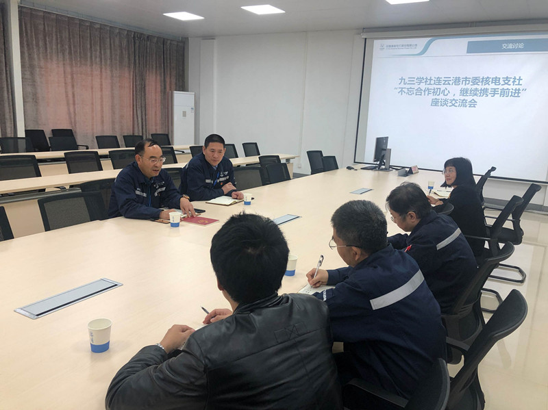 11月7日下午,九三学社连云港市核电支社组织召开“不忘合作初心,继续携手前进”主题教育座谈交流会。会议由支社主委谢江红主持。江苏核电有限公司党委副书记杨富堂、政治工作办公室副主任陈刚应邀参加座谈。