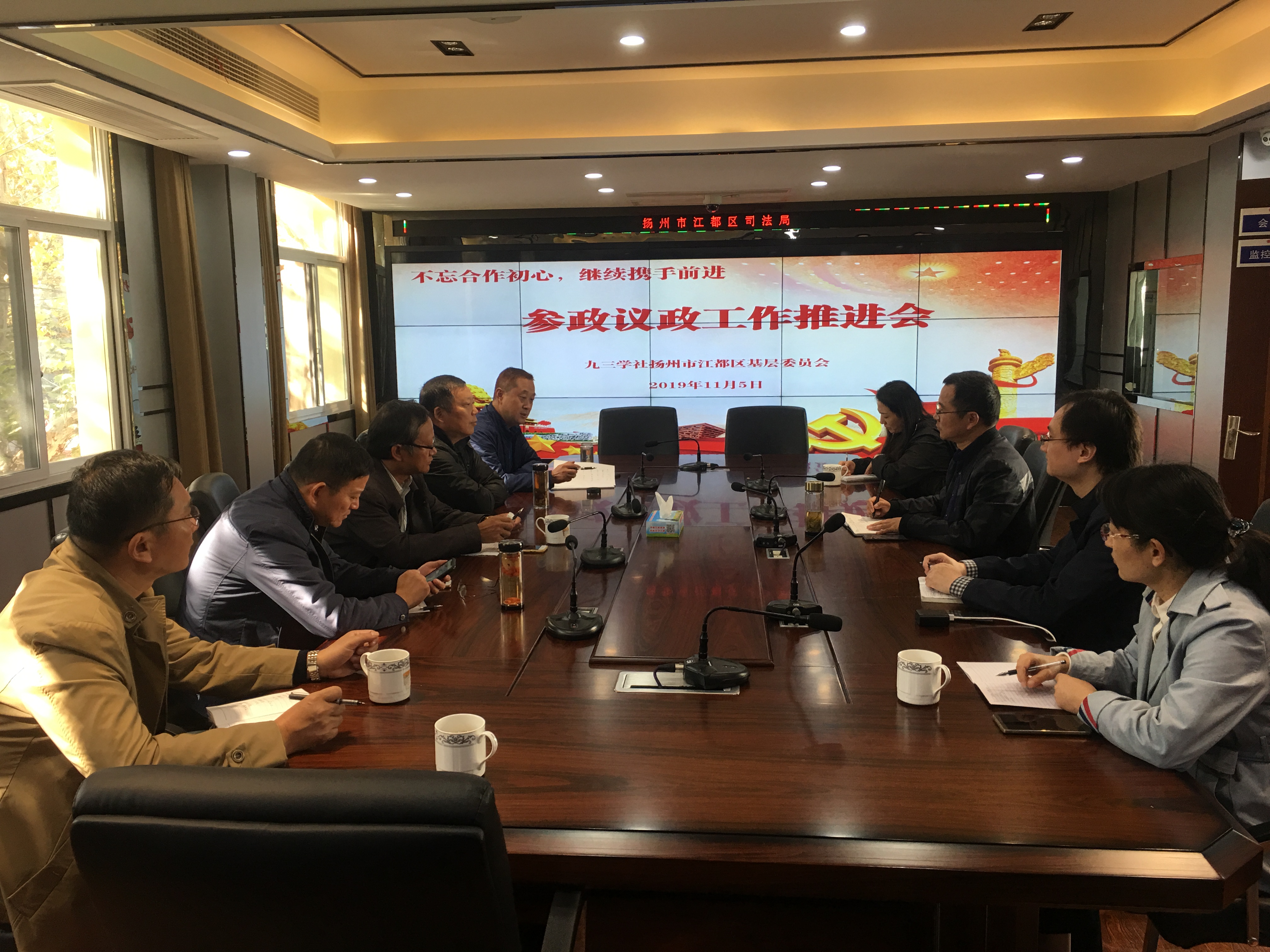 11月5日上午,社江都区基层委员会召开参政议政工作推进会,会议由童益军主委主持,各支社负责人、骨干社员参加会议。