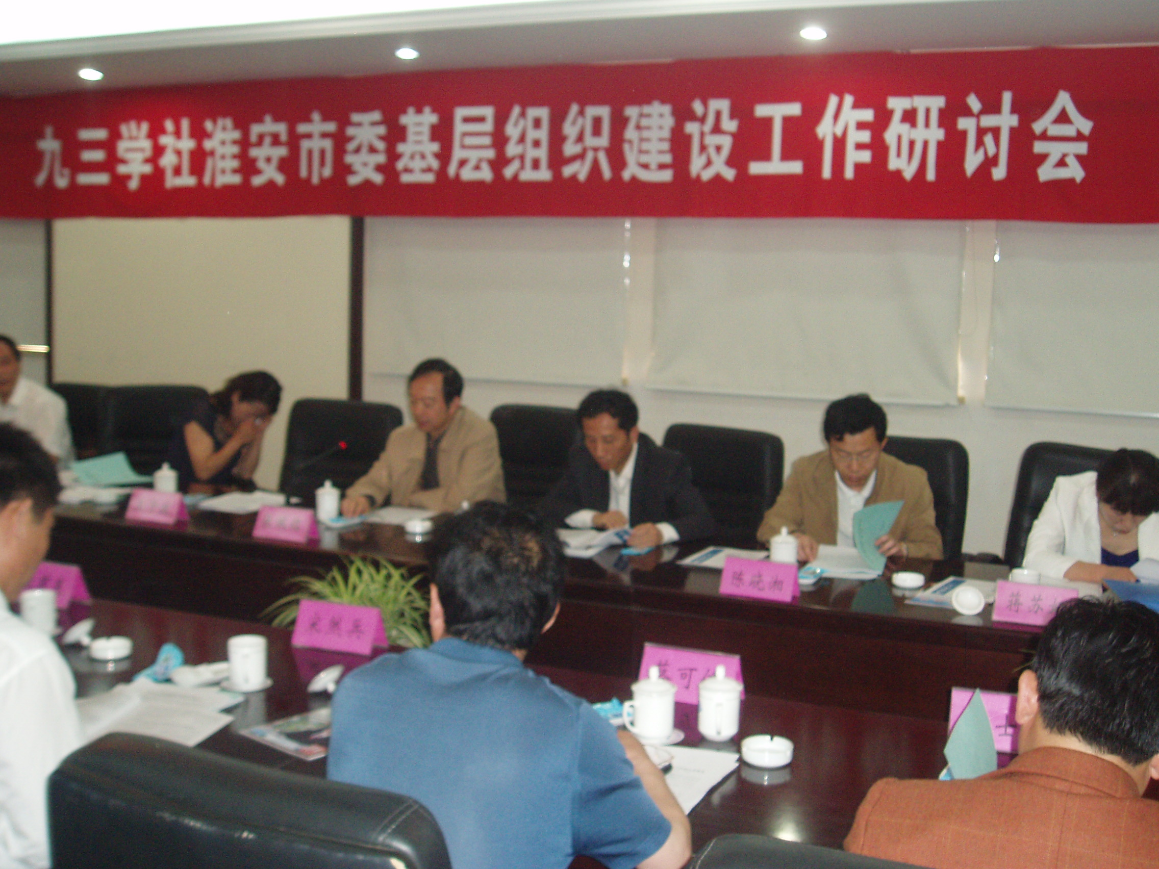 2009年5月22日,九三学社淮安市委召开党派基层组织工作研讨会,16位基层组织负责人提交了研讨材料,并分别在会上进行了交流发言,分别就党派基层组织功能、地位、作用,以及如何活跃党派基层组织、不断提升工作质量等方面,从理论与实践的结合上,作了很多方面探讨。九三市委委员、组工委各委员和支社主委、分管此项工作的副主委共30人出席了会议。
