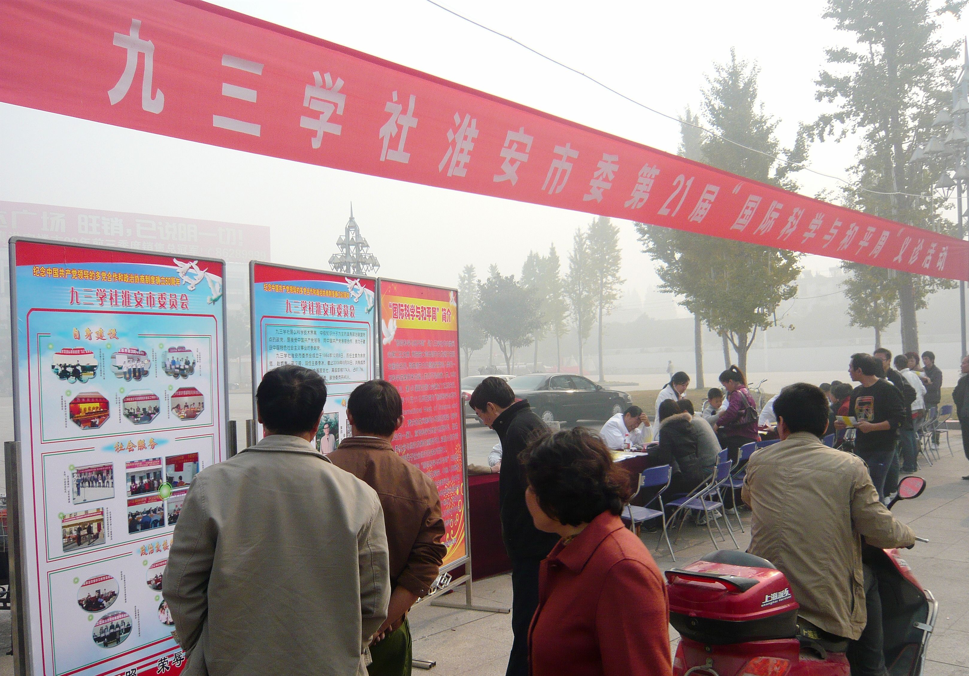 为弘扬科学、关注民生、积极服务社会,九三淮安市委在纪念“国际科学与和平周”21周年之际,于11月8日上午在市体育馆门前广场开展大型义诊活动,组织六名医卫专家为广大市民开展医卫咨询和义诊服务,前来接受服务的市民达400余人次。同时,结合当前全国防控甲型H1N1流感的严峻形势,医卫专家们还向前来接受服务的广大市民重点讲解了甲型流感的有效防范措施,并为他们发放宣传资料。