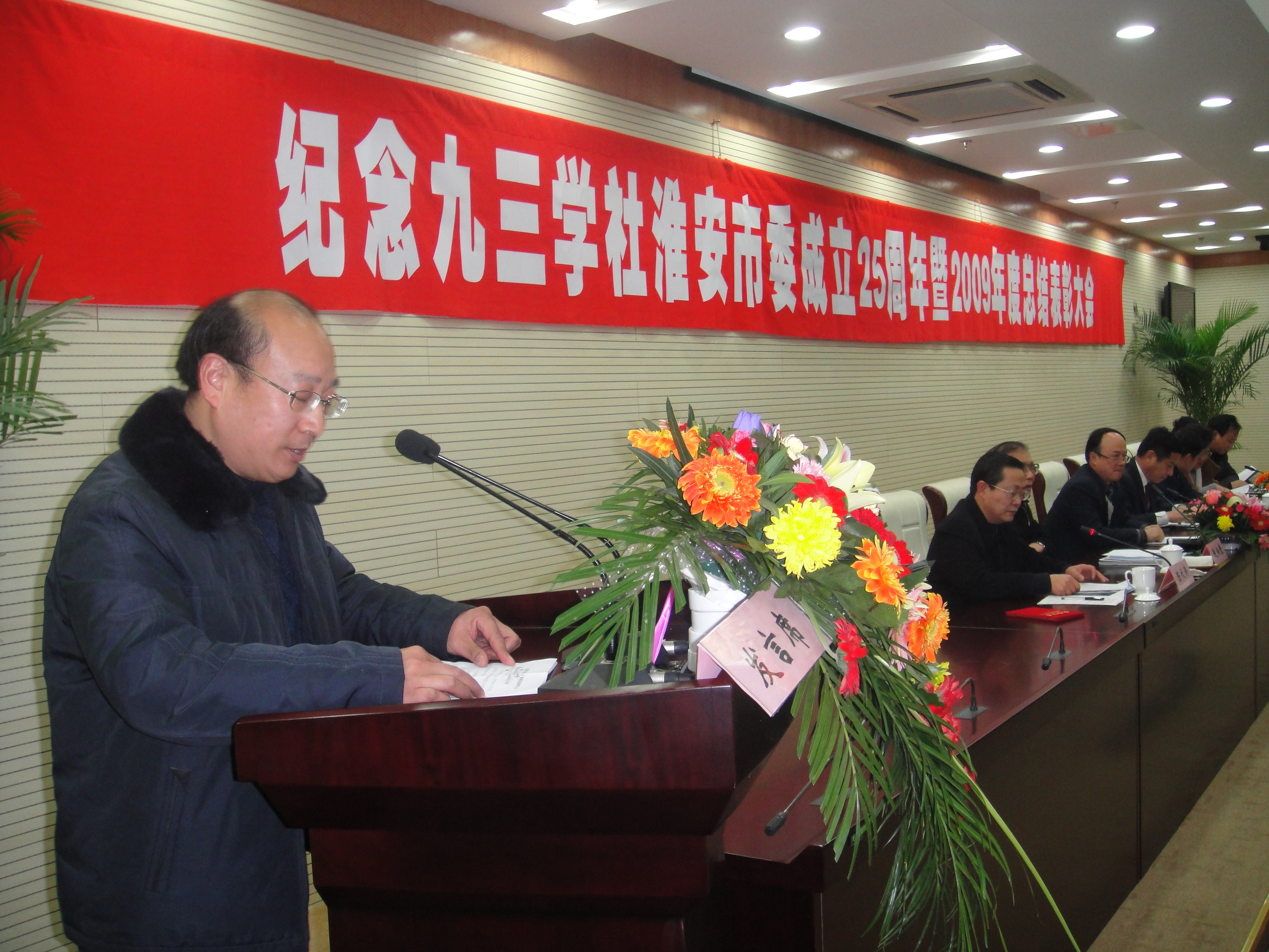 12月29日下午,庆祝九三学社淮安市委成立二十五周年大会在市区隆重召开。九三学社省委秘书长王献民,市委统战部副部长王子政,市人大常委会副主任、九三市委主委李冰等领导出席了庆祝大会,并分别讲了话。