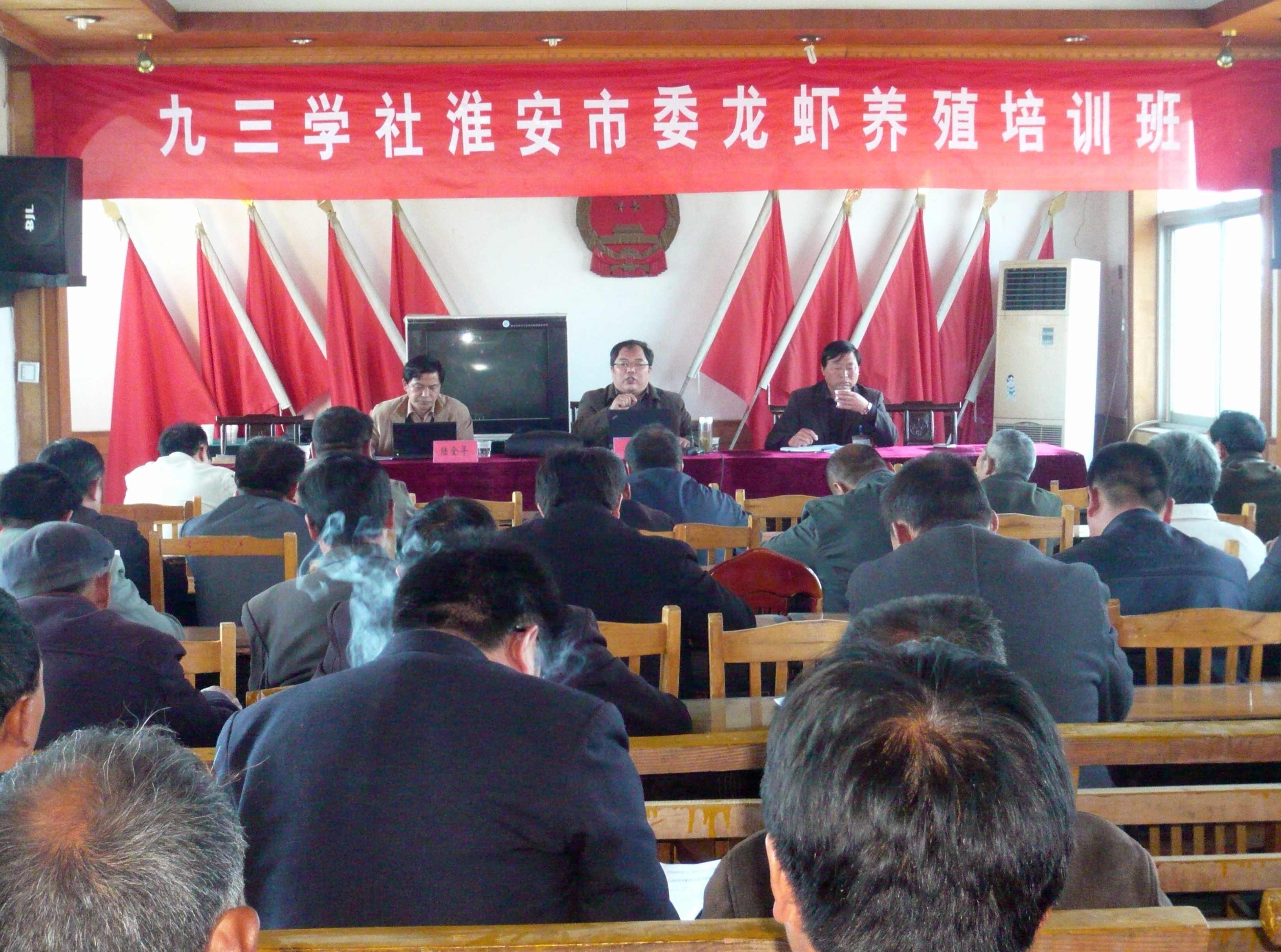 九三学社淮安市委龙虾养殖培训班,现场培训人数100余人,发放资料50余份。