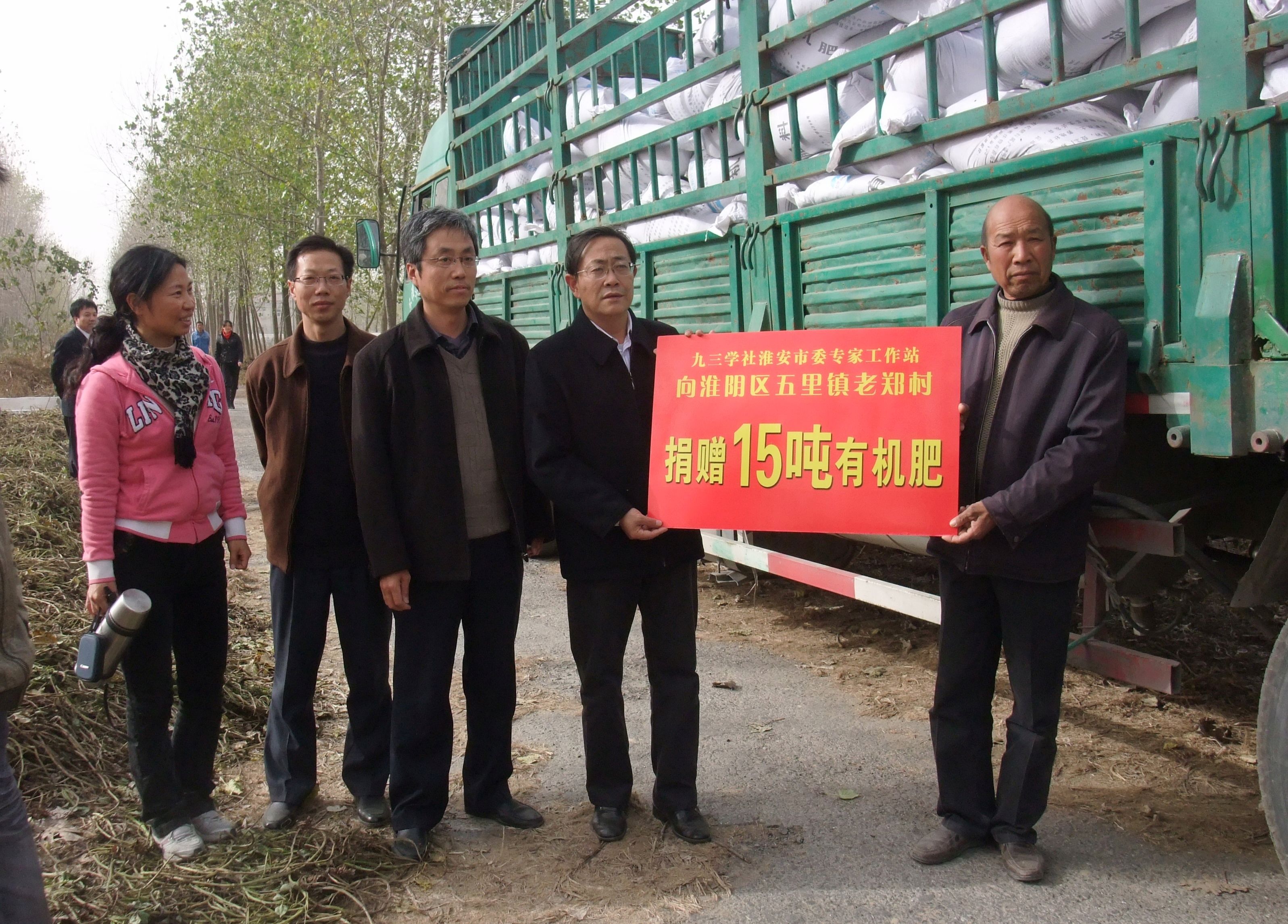 九三学社淮安市委向淮阴区五里镇老镇村捐赠15吨有机肥