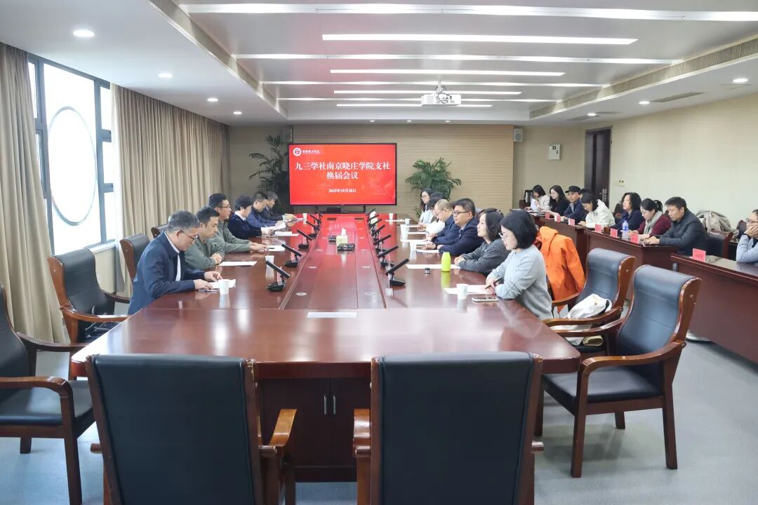 10月28日下午,九三学社南京晓庄学院支社举行换届会议。南京晓庄学院党委副书记易永建、九三学社南京市委会专职副主委徐月红、校党委常委、统战部部长于扬、社市委会组宣处处长朱伟、民革南京晓庄学院支部主委李昌庚出席会议。会议由九三学社南京晓庄学院支社周才方主持。