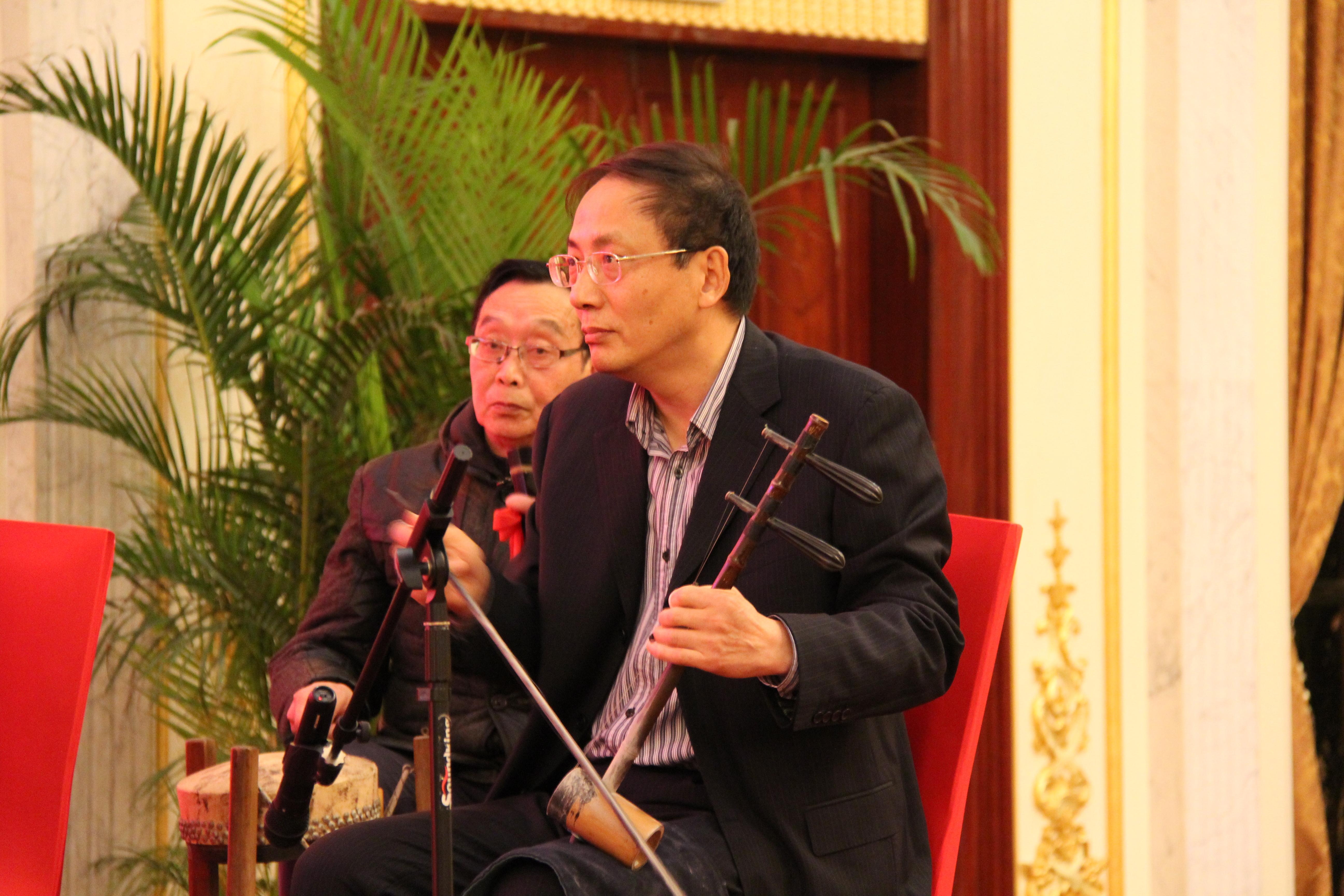 总结表彰后进行了新春联谊,尹建炉主委亲自操琴,陈翌冬秘书长主持,来自社市委、民进市委会、农工党市委会的艺术家们为与会同志奉献了一场精彩的京剧演唱会,共同庆祝即将到来的2014年新春佳节。(朱天龙)