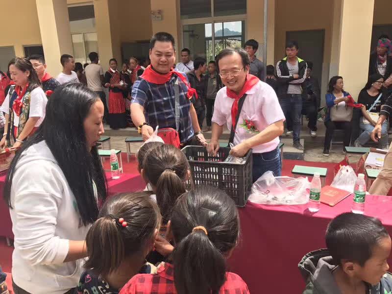 9月1日,学校举行了简单而又热闹的开学典礼。作为爱心捐赠人士代表,盛锋标参加了开学仪式,和36名幼儿园孩子、50名一年级新生一起升国旗,一起庆祝开学。孩子们为他带上红领巾,与一群被爱包围的师生、家长、村民,共同见证了新校园的落成。