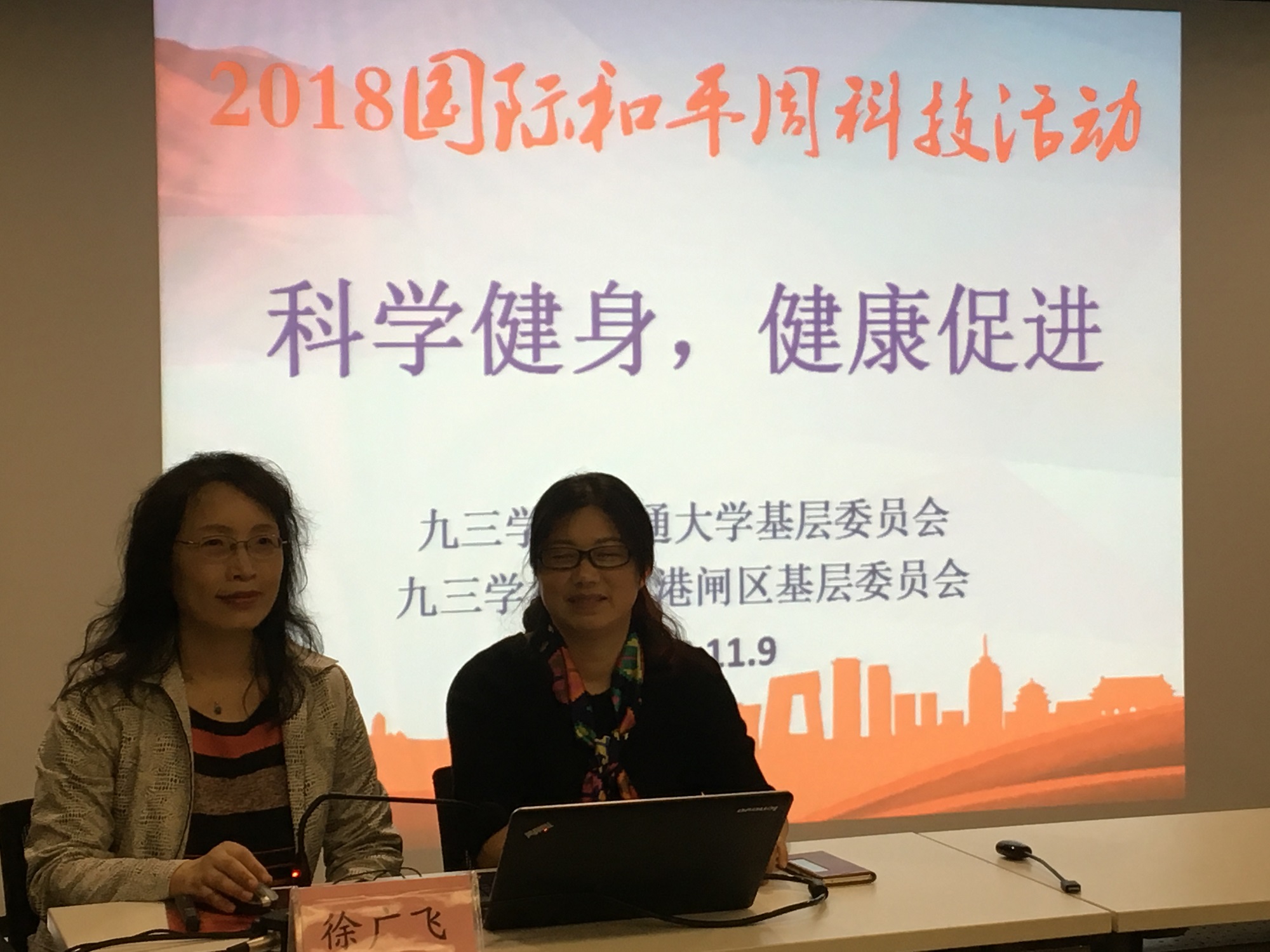 九三学社南通大学一支社与港闸区基层委员会联合组织“科学健身”的健康宣讲活动。九三学社南通大学一支社主委徐广飞为港闸区秦灶街道各单位的工会主席们详细讲解了在日常生活中进行科学健身的正确做法,并现场演示了简便有效的预防颈椎和肩周炎症的健身操。大家认真听讲座、跟着老师学颈、肩周健身操,活动气氛轻松活跃。