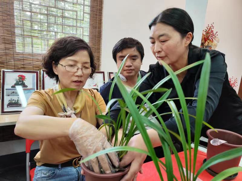 社员们在南通花桥园艺场创办人王敏的讲解下,深入了解了兰花的品种和种植过程,并亲身体验兰花栽种。培土、配比肥料、花木移摘,通过动手栽培,感受种植的无限乐趣。
