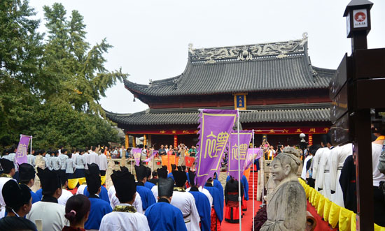 9月28日是中国伟大的思想家、教育家、哲学家、儒家学派的创始人孔子诞辰2565周年纪念日,上午9点28分,在南京夫子庙大成殿,孔子后人、社会各界代表、汉服爱好者等近千人按照祭孔祭祀礼仪的规范程序,举行祭孔大典,大典依照“入庙、迎神、献礼、奠爵、献帛、读祝、分献礼、行礼、送神、阖扉”等环节,依古礼祭拜,以表达对孔子的敬意,社省委海外联络委员会副主任、孔子第75世孙孔强卫主持大典,社省委秘书长冯蜀陉与海外联络委员会主任舒华忠代表九三学社江苏省委为孔子敬献花篮,并与海外联络委员会其他主任一同列席观礼。