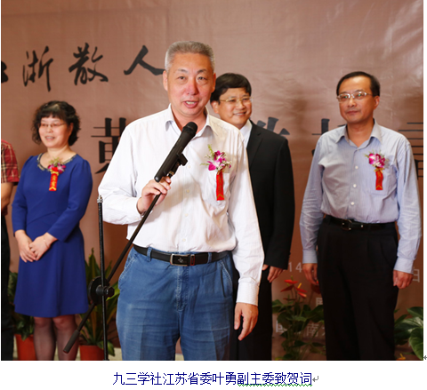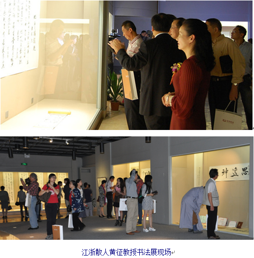 10月11日上午,由九三学社江苏省委、南京师范大学、杭州市余杭区文联共同主办和经纬集团承办的“江浙散人黄征教授书法展”在杭州的中国江南水乡文化博物馆开幕。九三学社江苏省委叶勇副主委、南京师范大学潘百齐副校长等致贺词,桑海常委、王献民前秘书长、戴艳主任和九三学社江苏画院的著名书画家刘之光、蔡知新、罗来瑛、李罗、范建华、江建华等与来自各地的嘉宾约200人参加了开幕式。