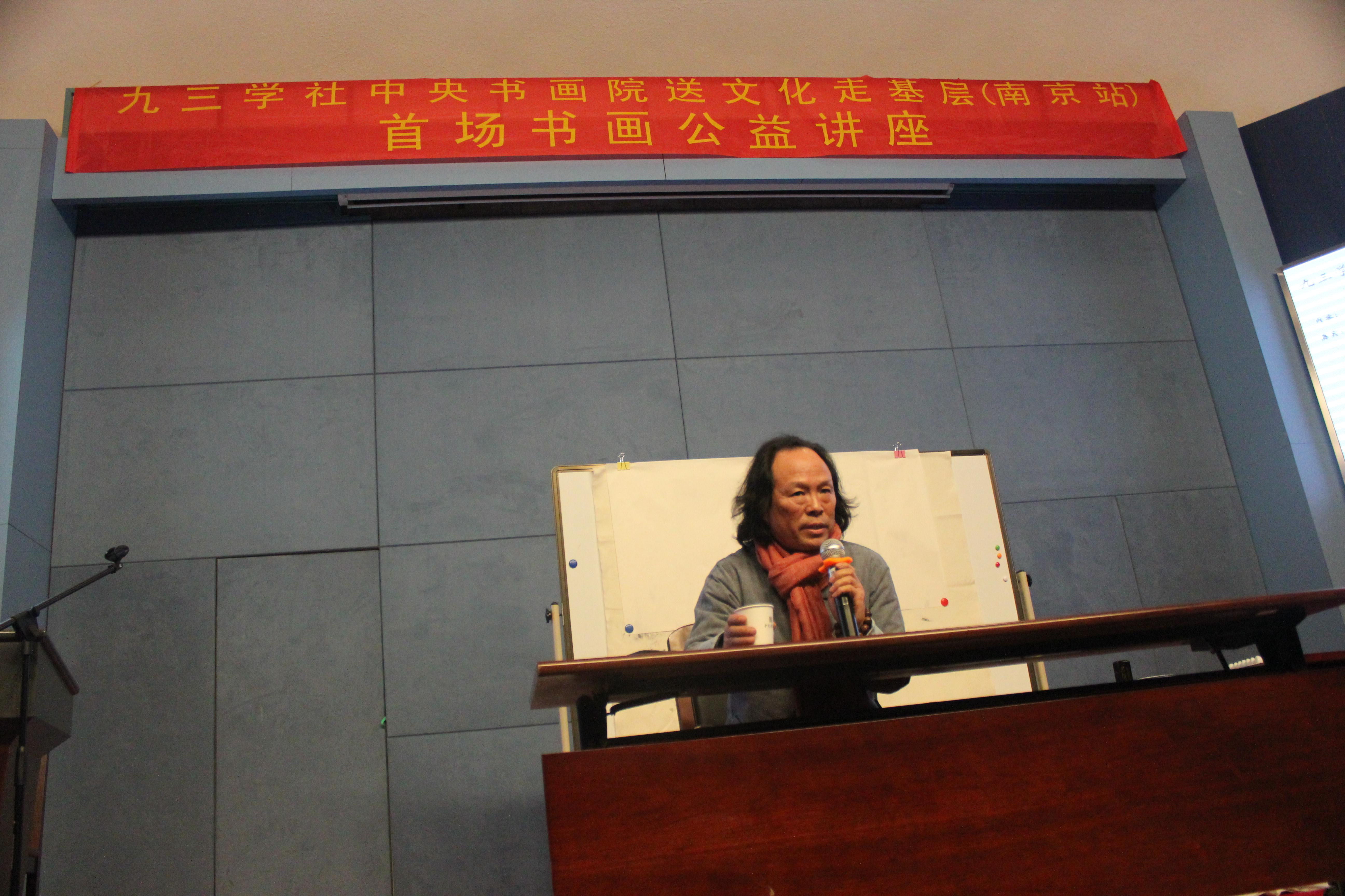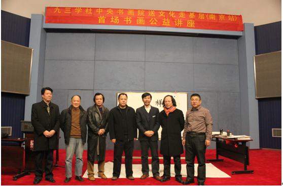 为了弘扬中华文化、传播书画艺术,为我国文化强国与软实力建设添砖加瓦、共襄盛举。2014年12月20日21日,九三学社中央书画院送文化走基层讲师团,首场书画公益讲座在美丽的南京金陵图书馆开讲。
