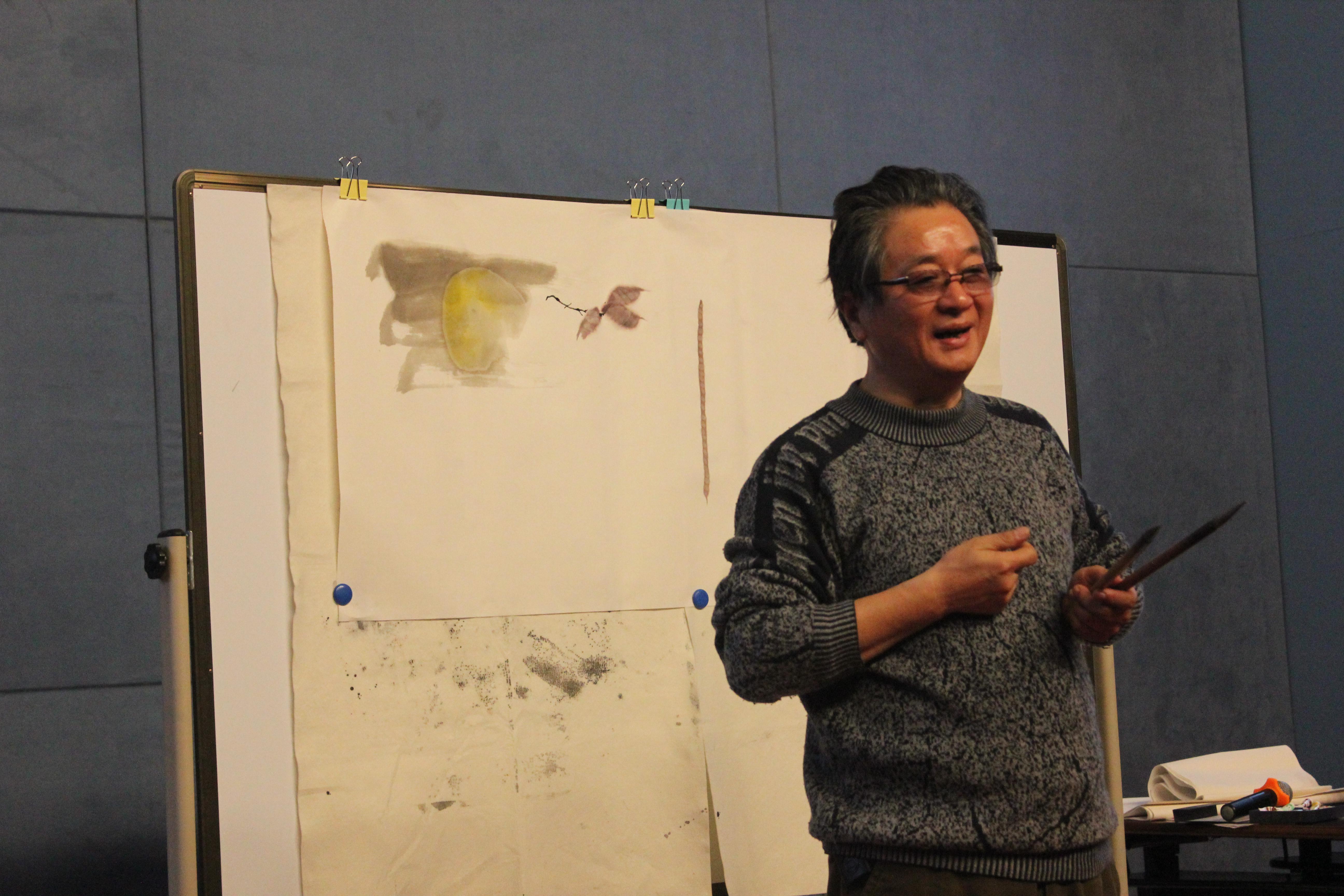 21日(星期天)下午,山水画家王贵华老师就中国山水画的历史、鉴赏、创作进行了演讲;并根据听众的提问与反馈,不断调整讲课内容以适应现场听众的要求。