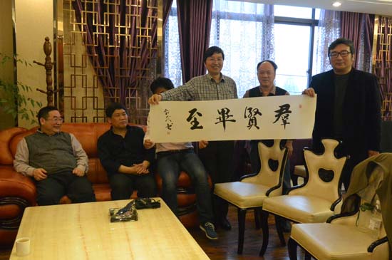 座谈会上,九三学社江苏画院王献民副院长还赠送了一幅“群贤毕至”的书法作品,并表达了九三学社江苏画院与泰州九三进一步合作的意愿。