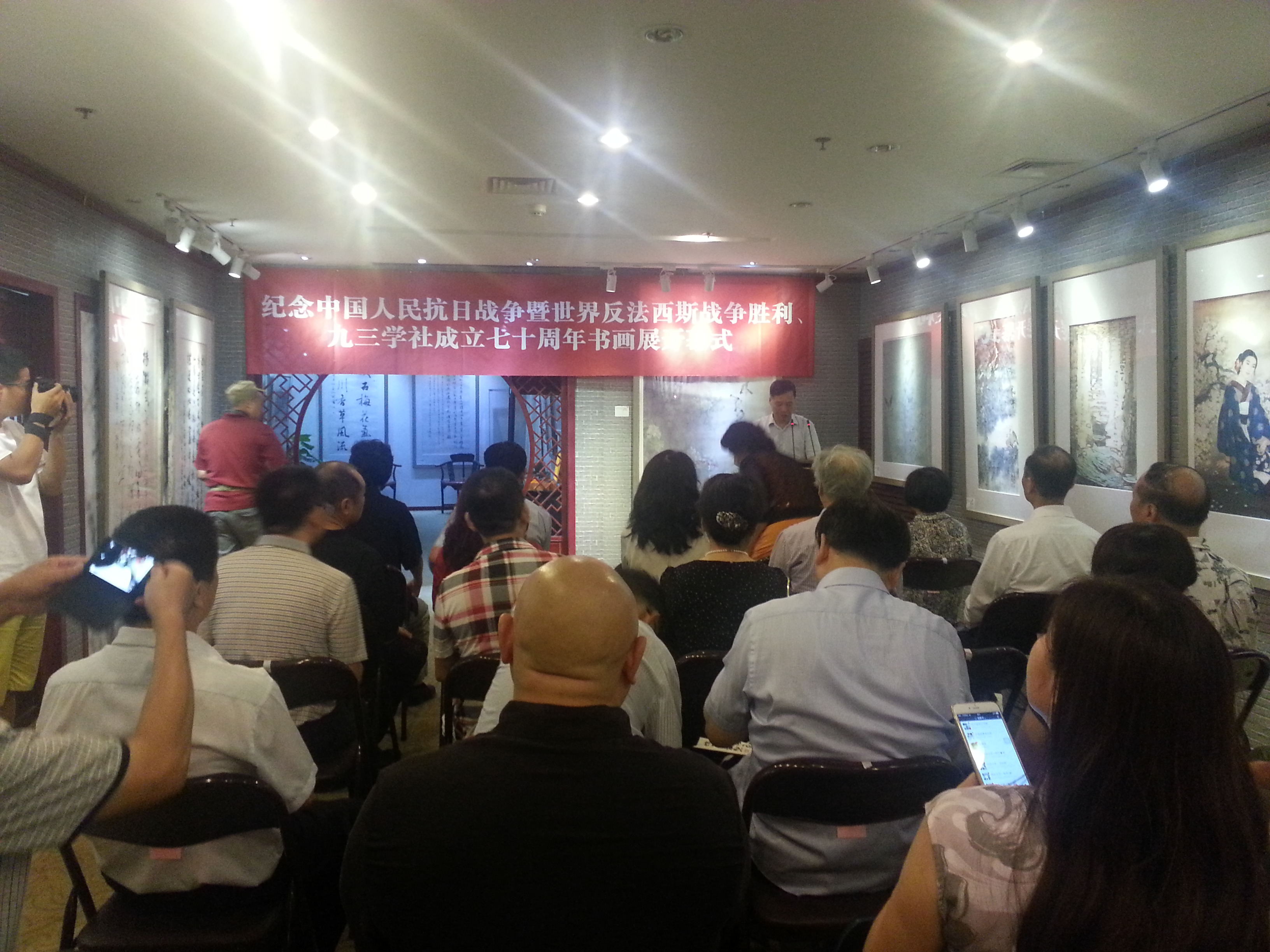 由九三学社江苏省委、九三学社江苏画院主办,江苏知何堂艺术品投资有限公司承办的《纪念中国人民抗日战争暨世界反法西斯战争胜利七十周年、纪念九三学社成立七十周年书画展》于2015年8月21日在南京市河西万达广场C座12层九三学社江苏画院展厅隆重开幕。
