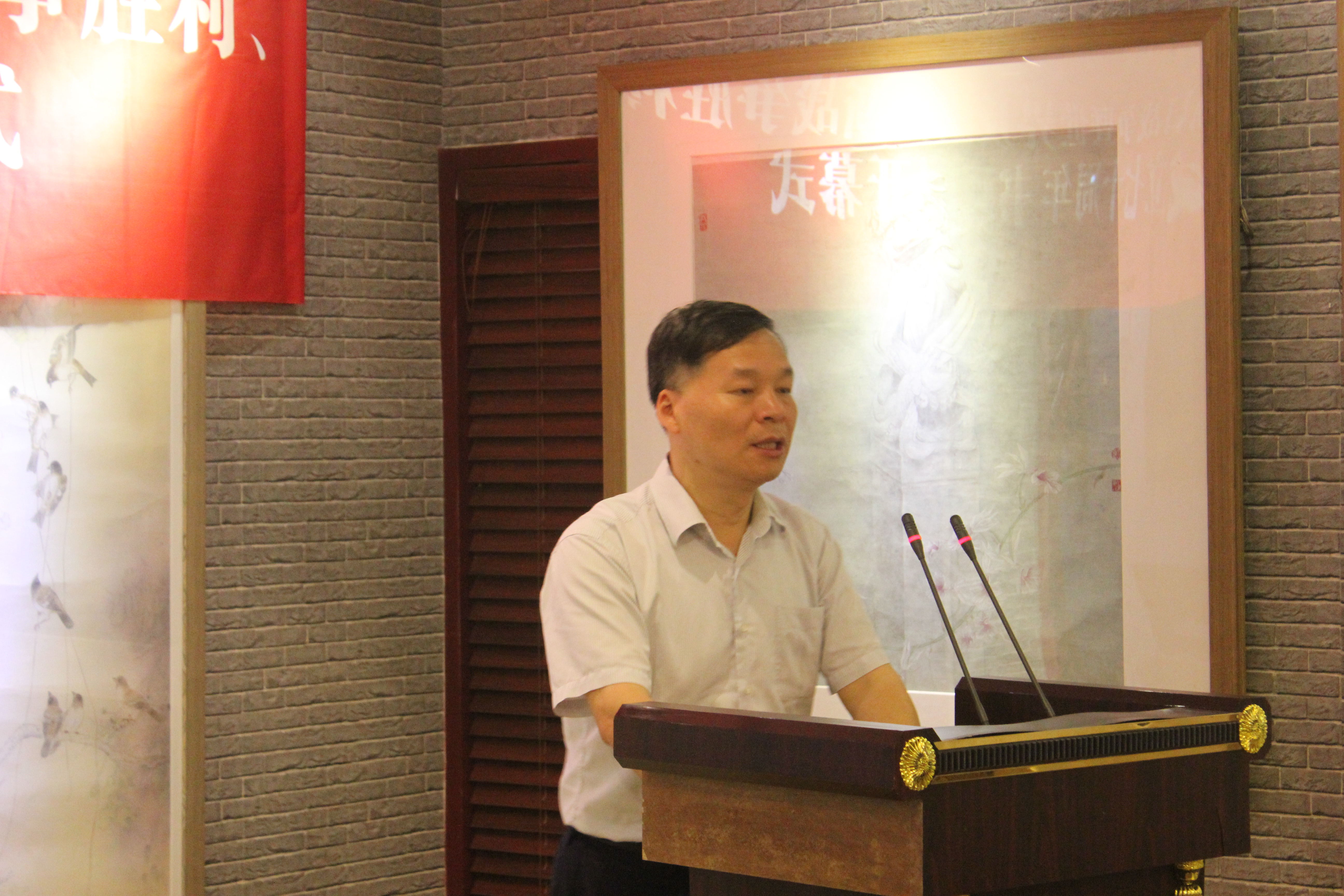 李奇副主委在致辞中高度概括了九三学社成立七十年来坚定站在中国共产党一边,为争取新民主主义革命胜利和新中国的建立,写下了自己光荣的历史篇章。同时,对九三学社江苏画院成立两年以来的工作给予了充分的肯定。