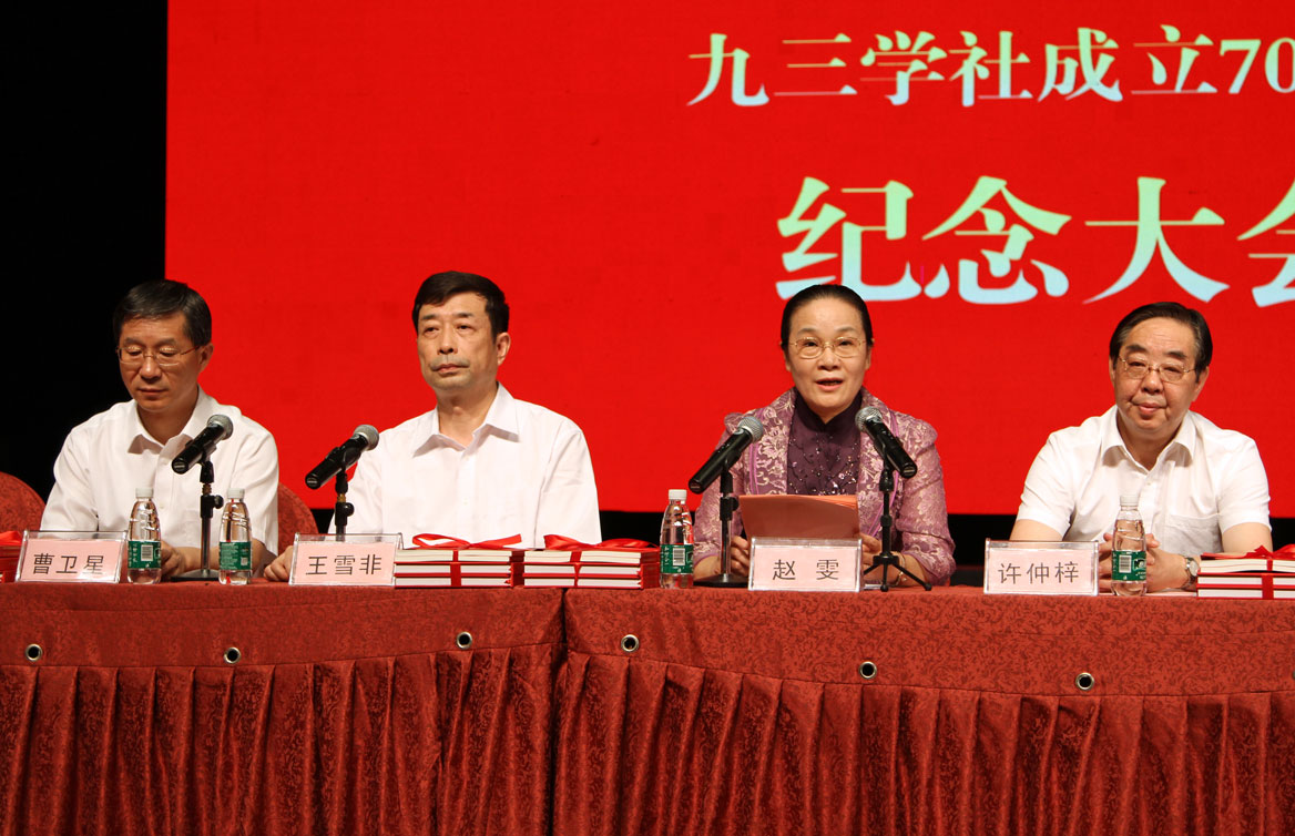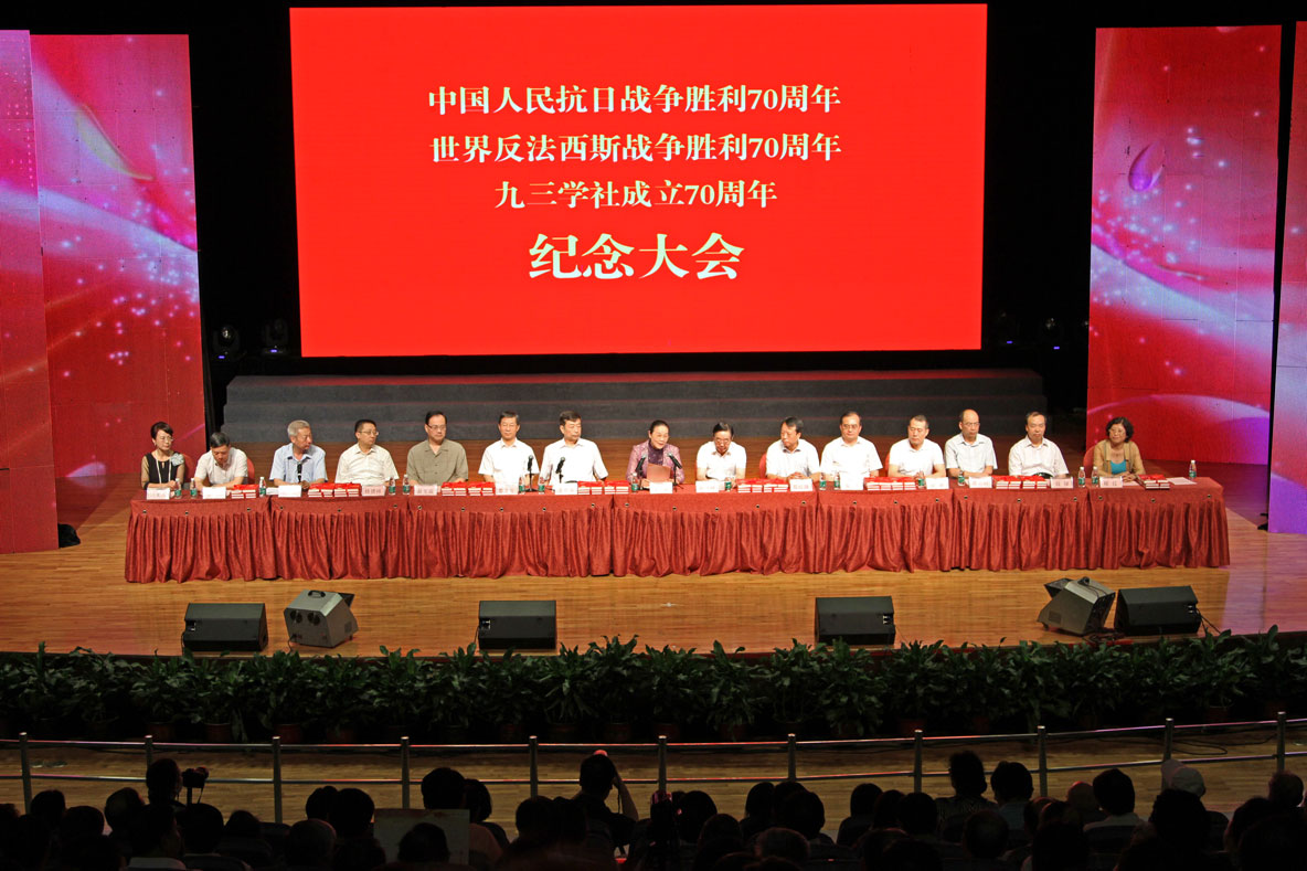 8月29日,纪念中国人民抗日战争暨世界反法西斯战争胜利70周年和纪念九三学社建社70周年大会在南京举行。九三学社中央副主席赵雯,省人大常委会副主任、九三学社江苏省委主委许仲梓出席会议并讲话。省政协副主席、省委统战部部长王雪非应邀出席会议并讲话。副省长、民盟江苏省委主委曹卫星代表各民主党派省委、省工商联致贺词。