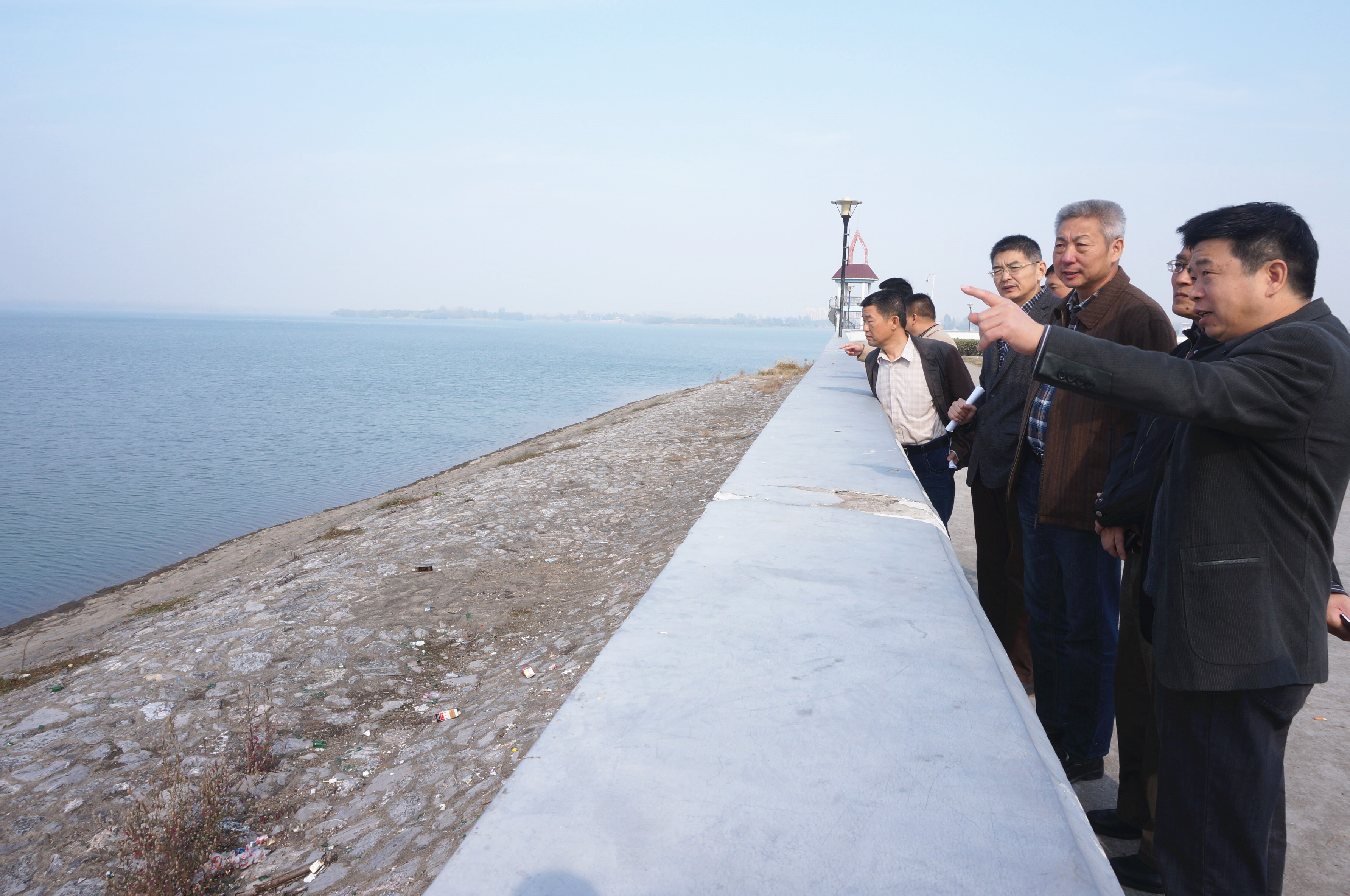4日上午,调研组来到城西水库,滁州市政协常委、社滁州市委主委周军,滁州市政协委员、水利局副局长沈登乐等陪同调研组实地查看了城西水库,并对大坝周边环境、外部设计、相关设备使用情况做了介绍。