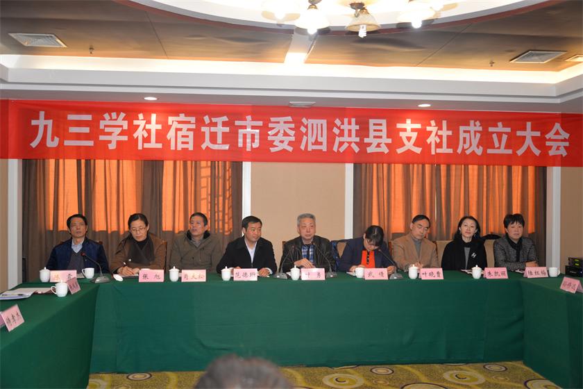 2月29日,九三学社宿迁市泗洪县支社成立。省政协副秘书长、社省委专职副主委叶勇,宿迁市政协副主席、社宿迁市委主委武倩,中共泗洪县委常委、组织部部长范德珩,泗洪县政协副主席、统战部部长叶晓曹,泗洪县工商联主席陈震等领导出席会议。