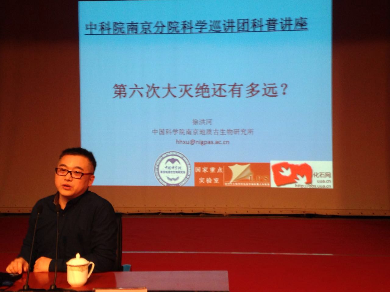 3月5日下午,中科院南京古生物所徐洪河研究员应九三学社科学讲坛之邀在南京图书馆为市民讲了一场题为《第六次大灭绝还有多远》的科普报告。