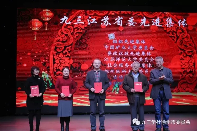 团拜会由九三学社徐州市副主委葛琳主持。九三学社徐州市委主委隋旺华首先致辞。九三学社江苏省委副主委叶勇代表社省委充分肯定了新一届九三市委的近期的工作,勉励广大社员继续发挥参政党职能,为经济社会建设作贡献,同时还给广大社员送来了他们新春的问候。大会对中国矿业大学委员会等4个九三省委先进集体和郭楚文等12名九三省委先进个人,徐州工程学院支社等8九三市委先进集体和上官敬芝等52个九三市委先进个人进行了表彰。