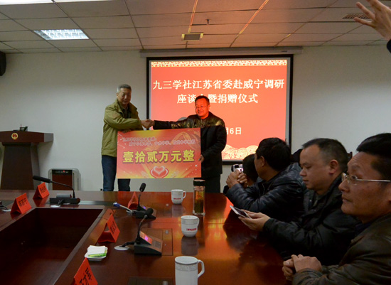 3月6日上午,在威宁自治县政府会议室内,举行了“九三学社江苏省委赴威宁调研座谈会暨捐赠仪式”,社贵州省委秘书长李梓、中共毕节市委统战部副部长张玉杰、毕节市政协副主席谢定敏、社毕节市委专职副主委张景兴、与江苏九三结对帮扶的小海、哲觉、中水中学校领导及贵州省、市、县相关领导干部等参加了座谈会。在座谈会上,威宁自治县杨华忠副县长对九三学社江苏省委一直不忘初心,在威宁教育、卫生、工农产业等方面的帮扶实践表示感谢。社贵州省委李梓秘书长着重介绍了九三中央及江苏九三在贵州毕节地区开展脱贫帮扶工作的情况并希望贵州九三和江苏九三的合作能进一步深入。叶勇副主委在座谈会上表示,江苏九三这次赴威宁为学校捐赠相机是与贵州九三长期合作共建的一个环节。威宁不仅山好、水好,威宁人民还有着发现美的眼睛,希望这次活动能让更多的孩子受到艺术的熏陶,感受美,记录美,传播美。这次江苏九三各市的专职副主委来到贵州,通过考察调研进一步了解贵州,了解威宁,后面我们将在更多的方面与威宁开展长期持久的合作。随后,叶勇副主委代表九三学社江苏省委向威宁小海中学、中水中学、哲觉中学捐赠了价值12万元的单反相机30台。活动结束后,考察组一行赴毕节参观了同心展览观并与社毕节市委座谈交流。