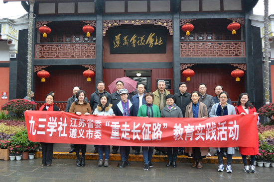 3月7日,考察组一行来到遵义,与社遵义市委共同开展了“重走长征路”教育实践活动,先后参观了遵义会议会址、红军山、娄山关、四渡赤水渡口、中国女红军纪念馆、苟坝会议会址等红色圣地,并考察赤水市农业园区建设项目与金钗石斛繁育、种植基地,就如何与当地在旅游、中草药产业、环境保护与治理等方面开展合作进行了探讨。