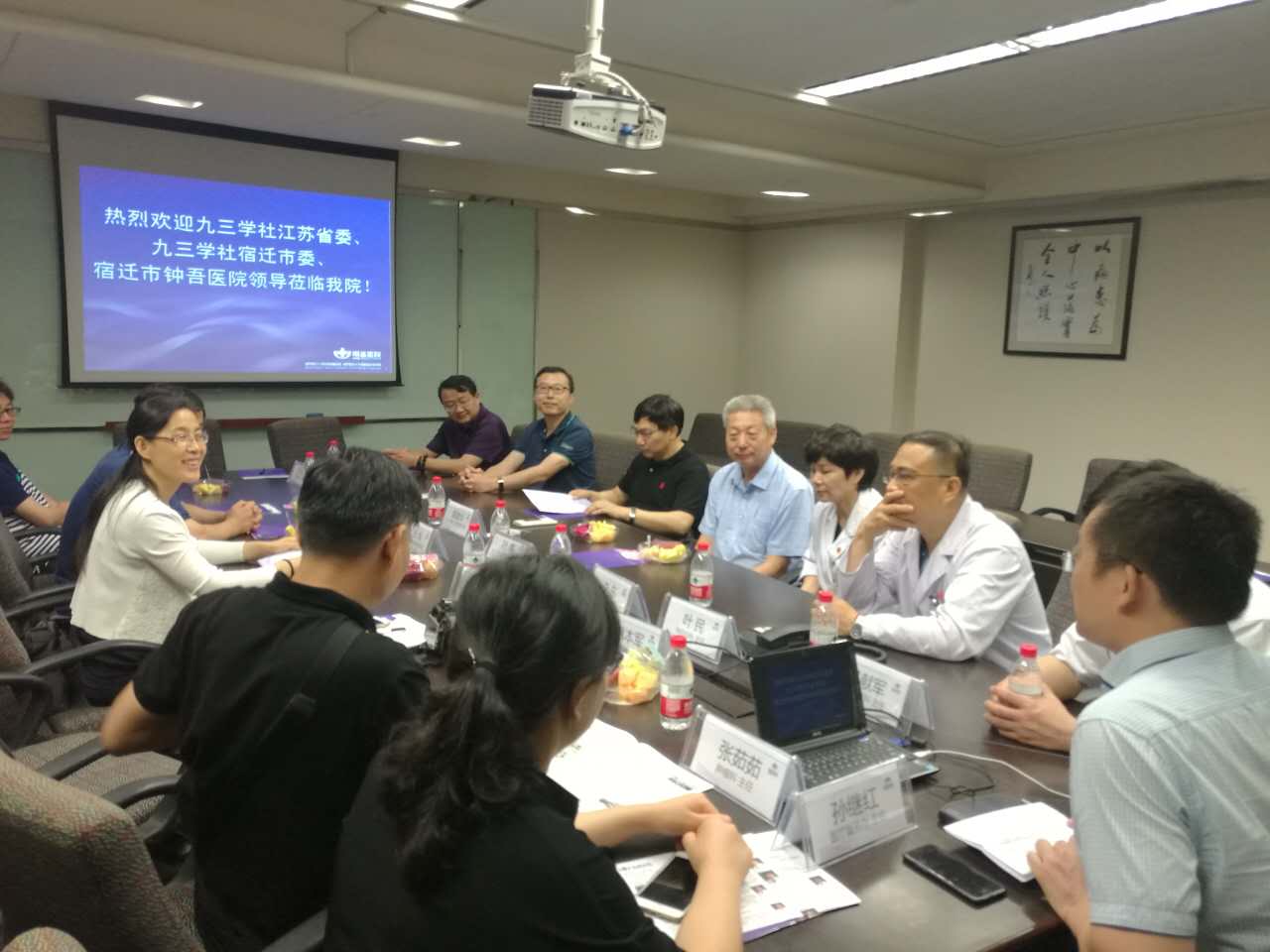 随后,与会人员观看了南京明基医院的简介短片,听取了两个支社基本情况介绍。双方就业务工作开展及工作体会进行了交流,就活动开展与方式作了探讨,并签署了友好协议。 张旭副主委在讲话中直言今天的活动带给我们四个惊喜:一是没想到散步时的闲谈促成了这次合作;二是孙主委如此细致周到的安排,让大家感到了九三大家庭的温暖;三是没想到双方院领导及党委如此重视;四是叶主委和蒯主委的莅临,给签约活动锦上添花。