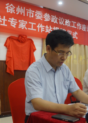 九三学社江苏省委专职副主委兼秘书长、九三学社南京市委专职副主委兼秘书长蒯建华同志和九三学社徐州市委主委隋旺华同志共同为专家工作站揭牌。