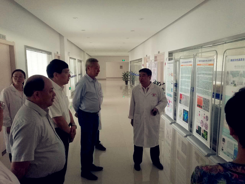 在海安期间,调研组一行还考察了以九三社员为主要研发人员的海安九三极恒医学产业技术研发中心。九三南通市委会副主委陈伯森、秘书长张爱娟陪同考察。