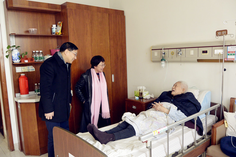 戊戌年春节前夕,2月12日上午,九三学社江苏省委主委周岚去医院看望慰问社省委原主委彭司勋、闵乃本院士。社省委专职副主委兼秘书长蒯建华陪同看望。