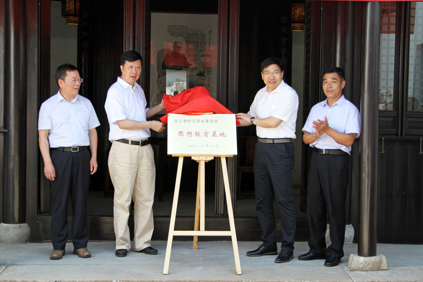 6月14日,“九三学社江苏省委思想教育基地”在苏州常熟王淦昌故居举行揭牌仪式,这是社省委设立的第五个思想教育基地。社省委副主委兼秘书长蒯建华,苏州市政协副主席、社苏州市委主委陈林森及当地统战部门领导共同为思想教育基地揭牌。