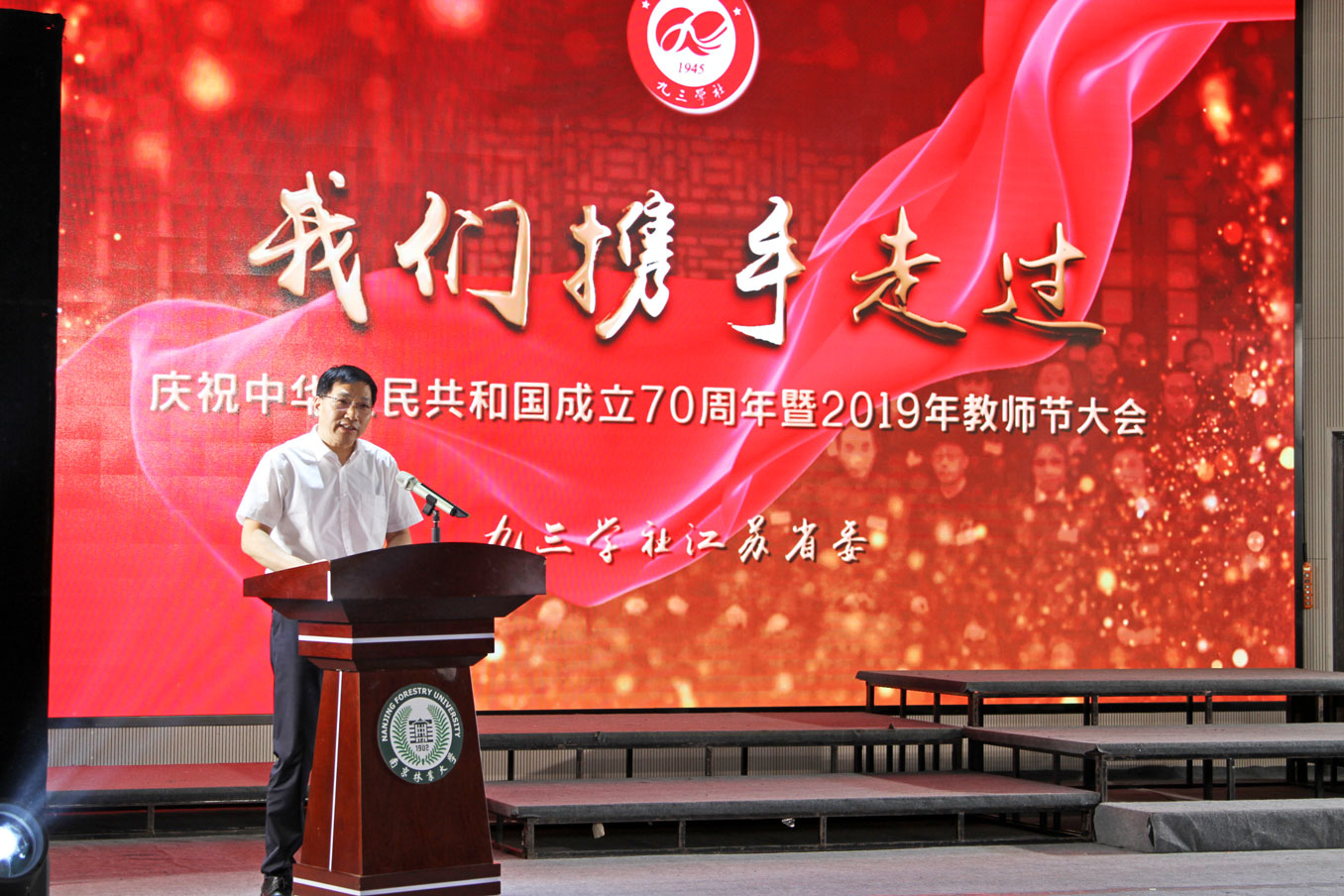 社省委副主委陈发棣代表社省委发表了热情洋溢的讲话。他指出,九三学社和南京林业大学有着深厚的历史渊源,九三学社的创建人之一、中国林业泰斗、新中国首任林垦部部长——梁希先生,曾任南京林业大学的前身—中央大学森林系主任。南京林业大学自1952年正式建校至今的十任校长中,九三学社就有四位,其中首任校长金善宝、第二任校长郑万钧、第五任校长马大浦和第七任校长赵奇僧都是九三学社的杰出代表。本届教师节庆祝大会放在南京林业大学举办,既是对九三先贤的致敬、对九三学社优良传统的传承,也是社省委对南林大委员会工作的充分肯定。