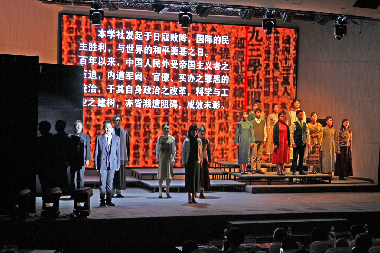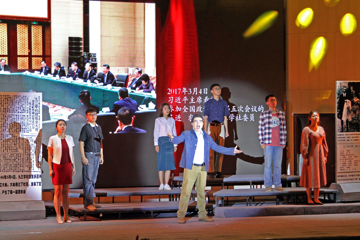 庆祝大会上,社省委副主委李奇,南林大统战部部长赵晶共同向南林大“梁希”班同学赠送文化衫。南林大师生倾力奉献的音诗画《我们携手走过》,主题鲜明,创意隽永,生动再现了九三学社走过的光辉历程,深情演绎了九三先贤追求民主科学的赤子之心。