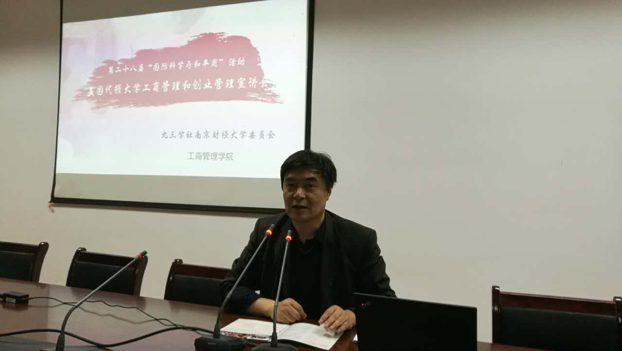 今年11月我们迎来了第二十八届“国际科学与和平周”,九三学社南京财经大学委员会积极响应九三学社“科技强国·和平发展”的国际科学与和平周”活动主题,于11月1日举办了“美国代顿大学工商管理和创业管理项目宣讲会”,一方面让广大社员了解国外工商管理和创业管理的学科发展和建设情况,另一方面,给全校广大同学们提供更加宽阔的发展渠道和学习空间。活动在南京财经大学仙林校区管理学科楼408会议室举行,美国代顿大学项目负责人马路讲师进行了宣讲。我社广大社员积极参加,同时,100多名高年级大学生也参加了会议。