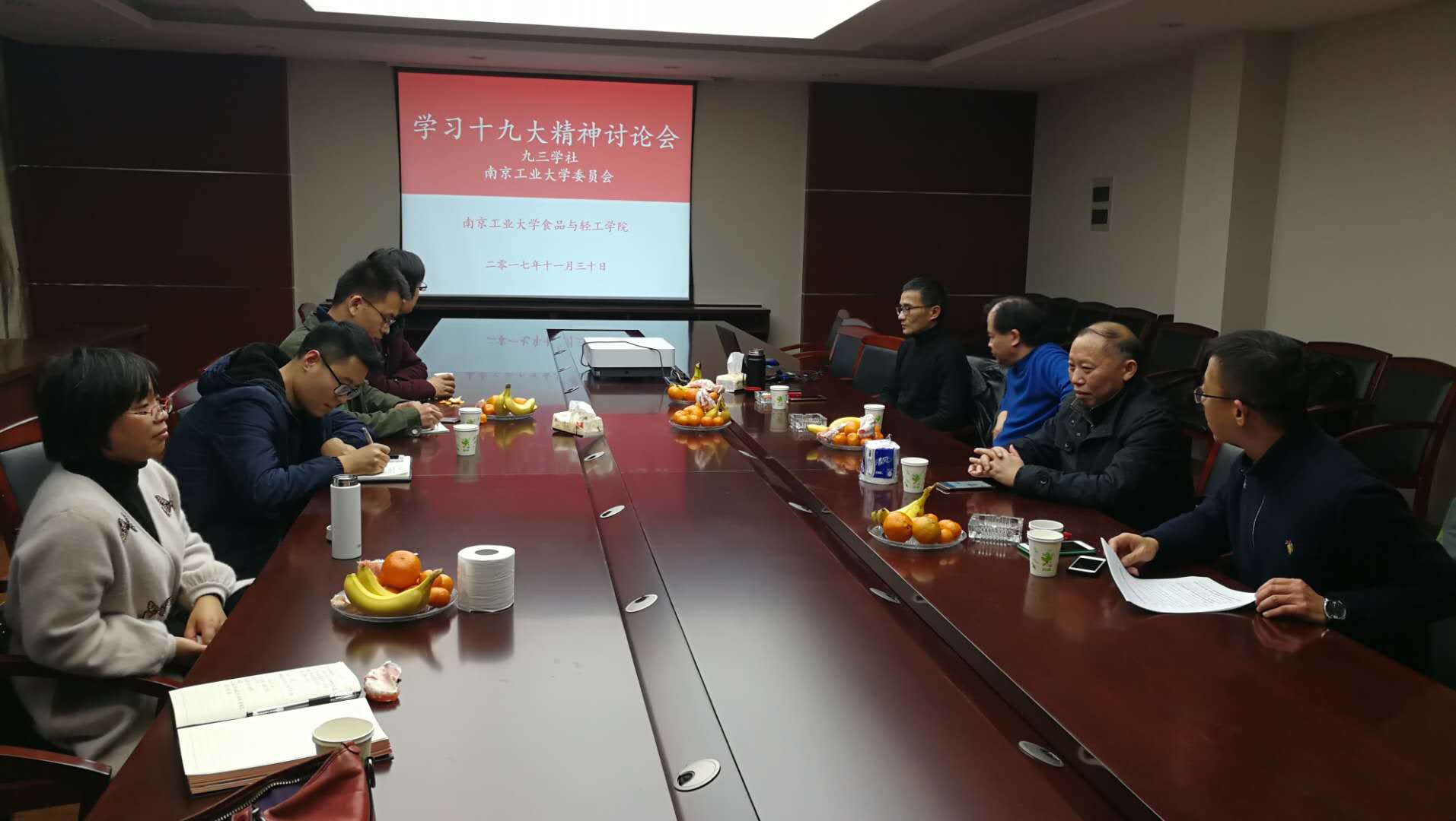 11月30日下午, 九三学社南京工业大学委员会第三支社在食品与轻工学院615会议室开展了学习党的十九大精神研讨活动,参加活动的第三支社社员有姚忠、王德才、汪海波、丁毅、陶汉中、刘浙、王彩凤、张志刚、朱本伟、解沛忠等老师,校九三学社主委王辉参加了活动。
