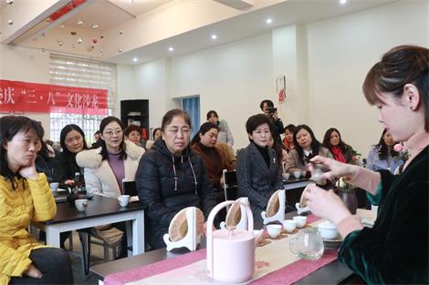茶文化的内涵其实就是中国文化内涵的一种具体表现。老师在简要介绍了中国茶的历史文化起源、发展历程、分类及不同茶种的功效后,从“识茶、品茶、茶礼仪”再到“茶与健康、茶与修养”等,循环渐进地开始讲述茶文化,并现场指导大家茶桌礼仪。平日里难得闲坐下来的女社员们都听得非常认真,并在茶艺老师的示范指导下学习操作。